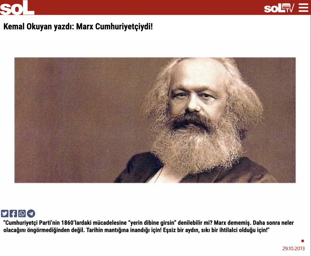 2 Kemal Okuyan, “Marx Cumhuriyetçiydi”, Sol, 29 Ekim 2013.